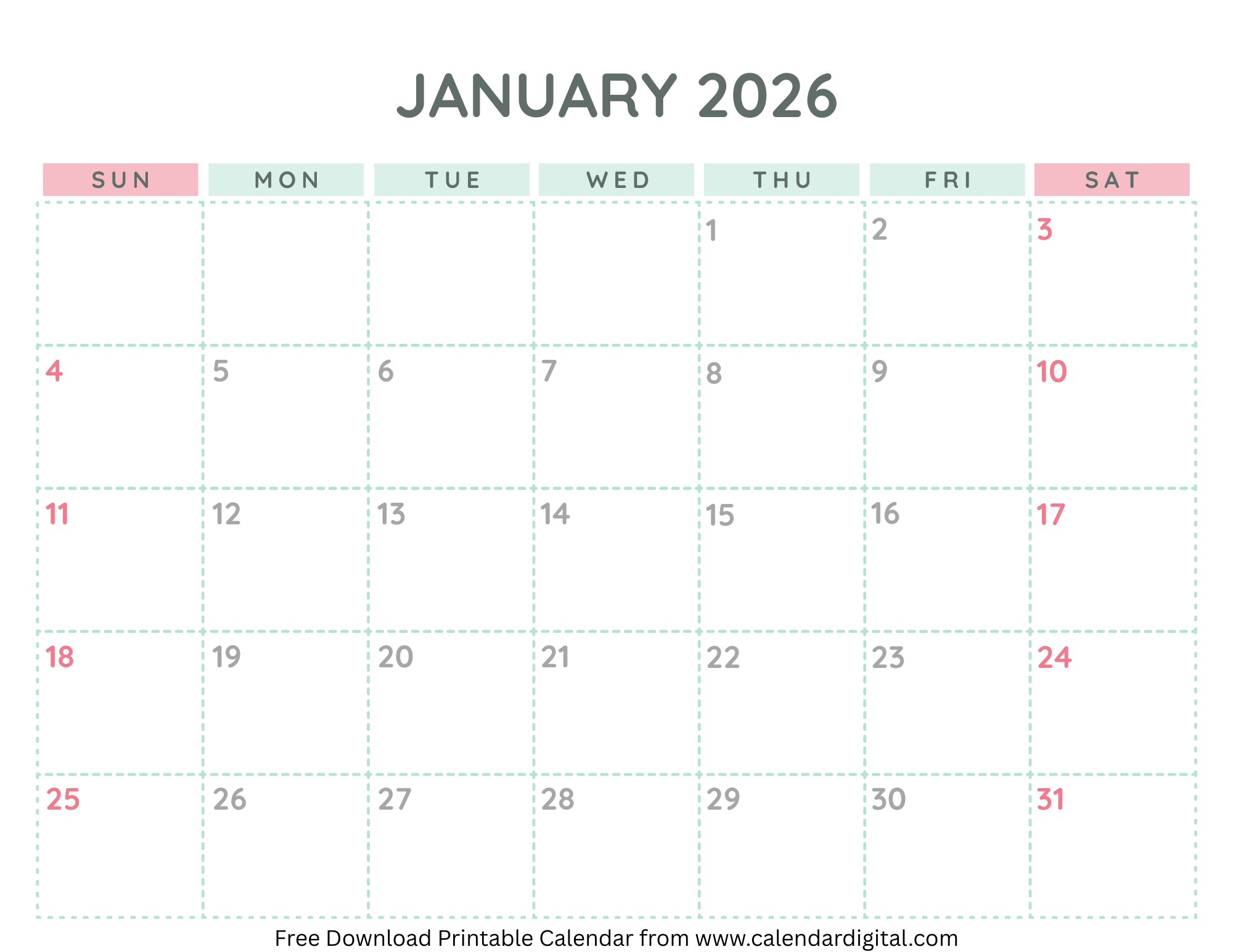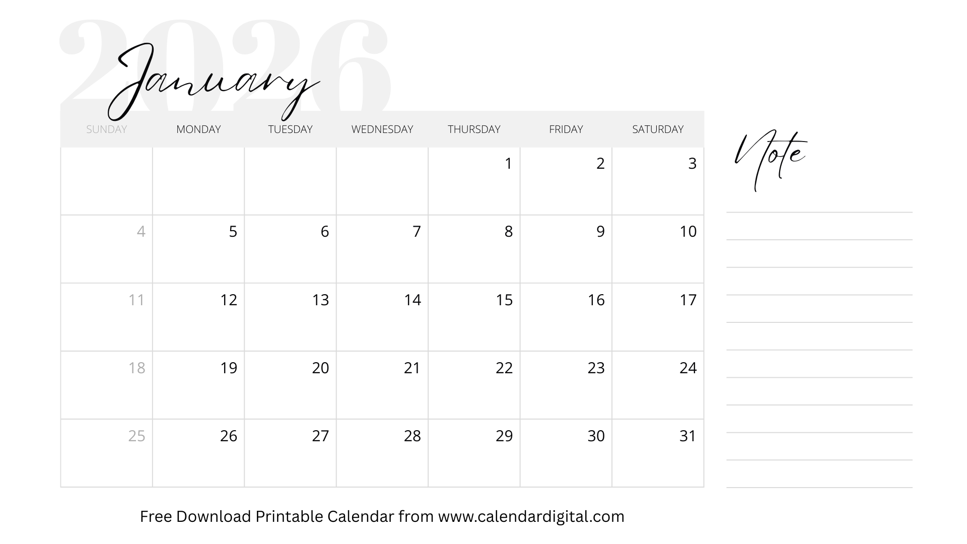The January 2026 calendar consists of 31 days and starts on Thursday. It is the first month of the Gregorian calendar and sets the tone for the rest of the year.
